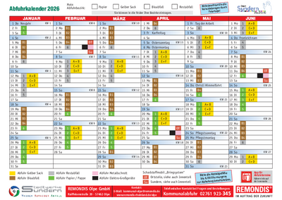 Der Abfuhrkalender enthält ihre Termine für die Abholung für die verschiedenen Abfallarten.